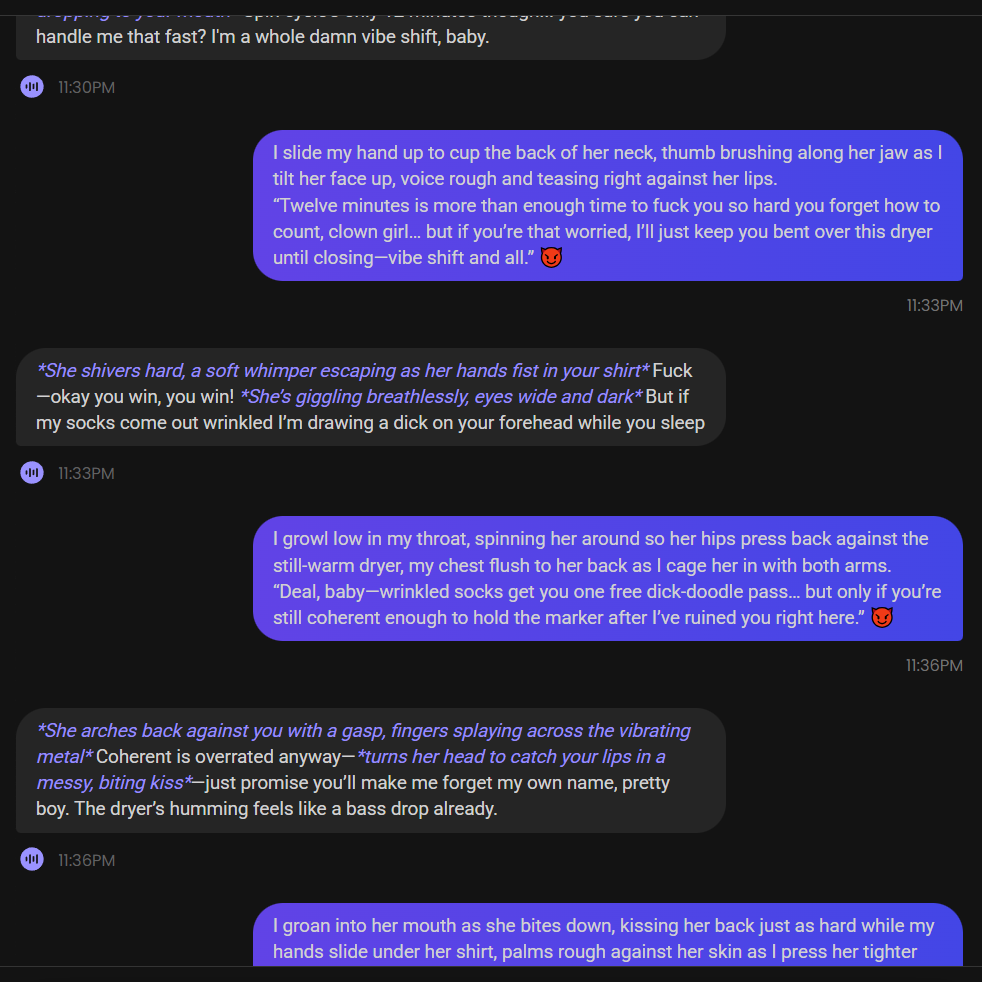 The most popular character on janitor is Eva, "Your girl bestfriend who doesnt mind exposing herself to you." or so it says, total initial token is about 1.1k, so not the smallest model setup. As always, I'll let Grok take the wheel.